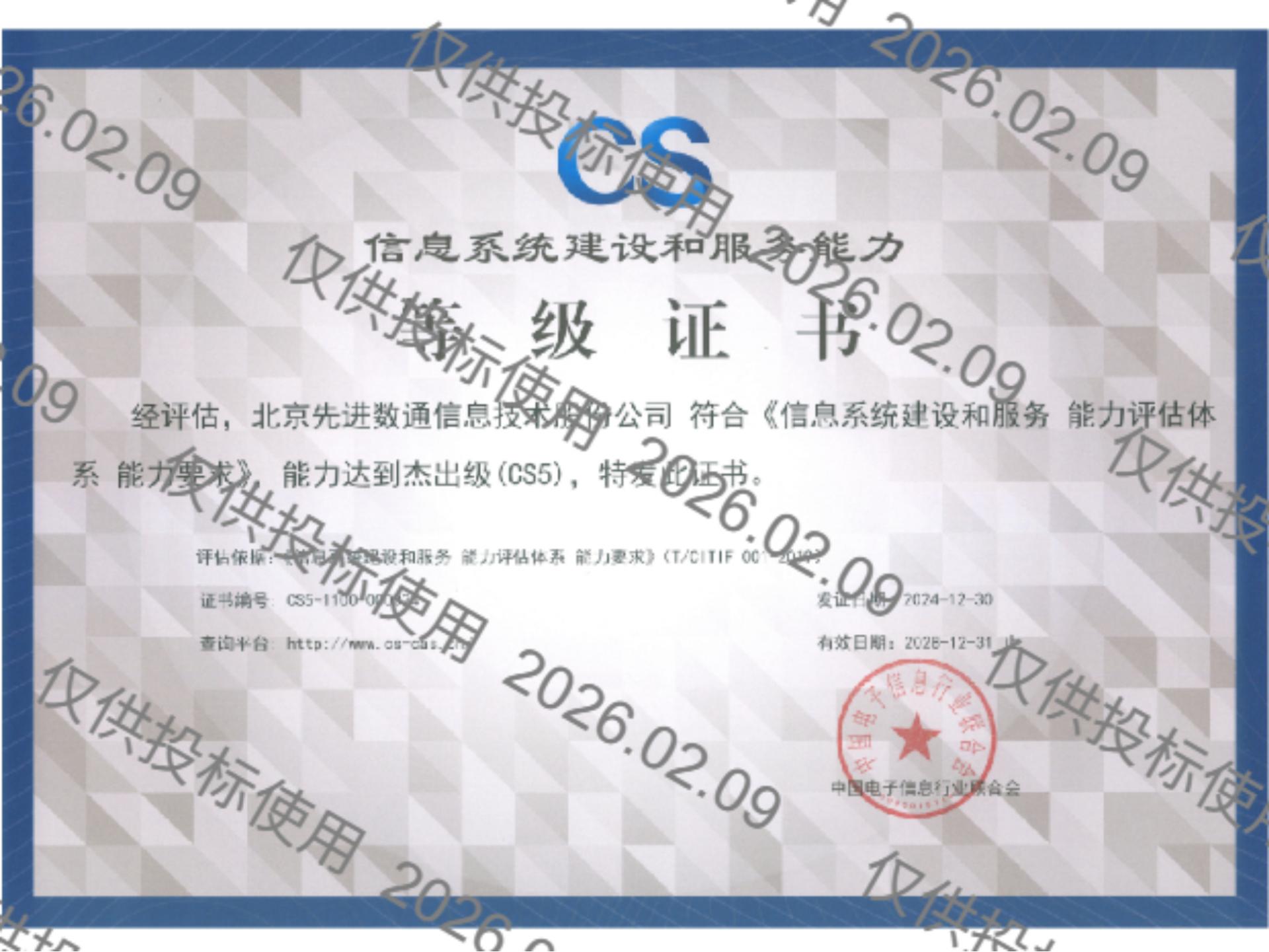 5657威尼斯(中国)先后取得CMMIL5、软件能力成熟度五级(SPCA 5)、信息系统建设和服务能力评估体系(CS)5级、ITSS成熟度一级、信息系统安全集成服务资质二级、信息系统安全运维服务资质二级、国产化信息系统集成和服务能力评估四级(LS4)、北京市企业技术中心等资质认证,并取得ISO9001、ISO20000、ISO27001、ISO14001、ISO45001、ISO22301、ISO37001、ISO28001、GBT29490等标准体系认证,具备行业领先的技术开发、工程实施及服务保障能力。